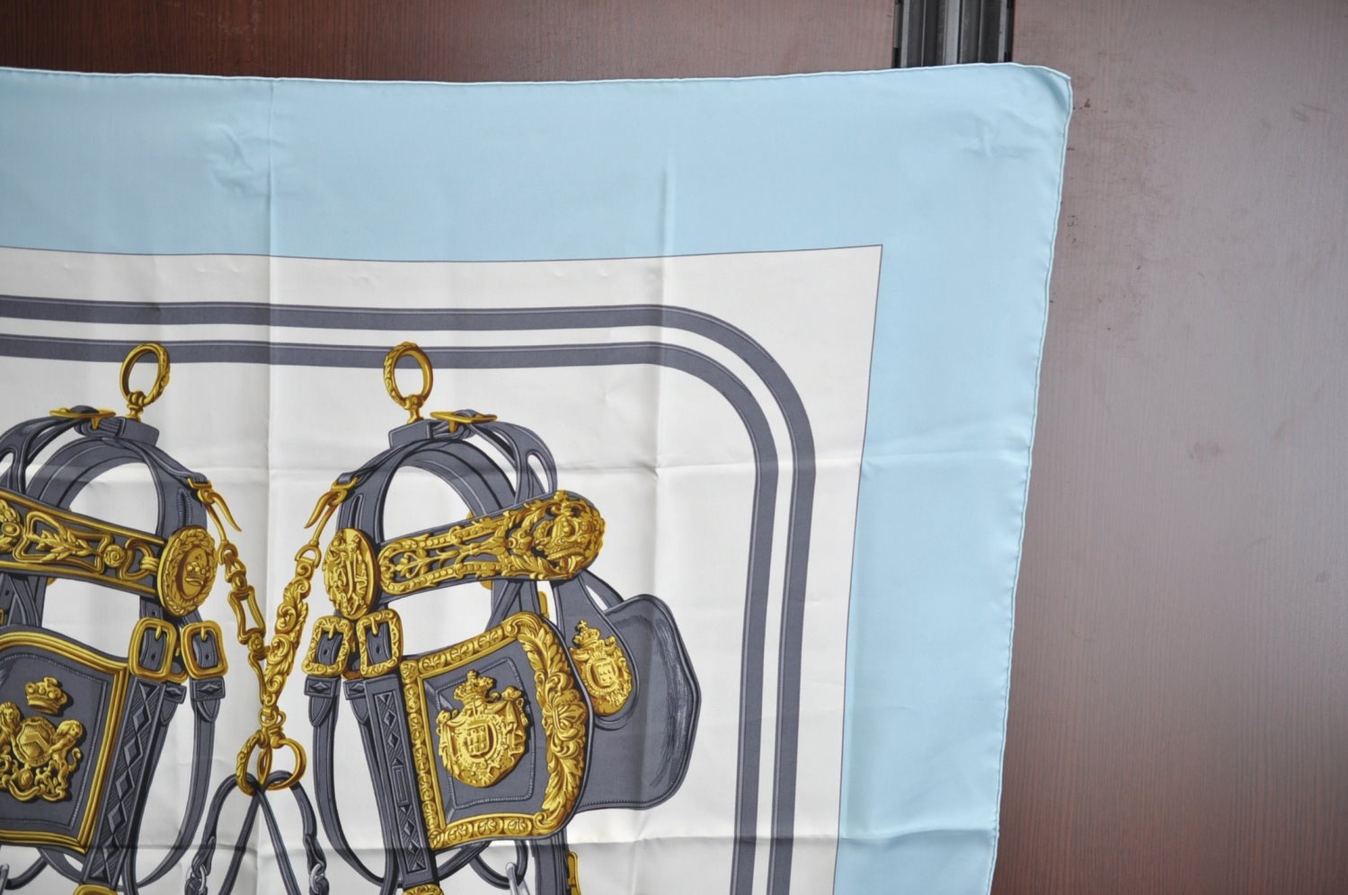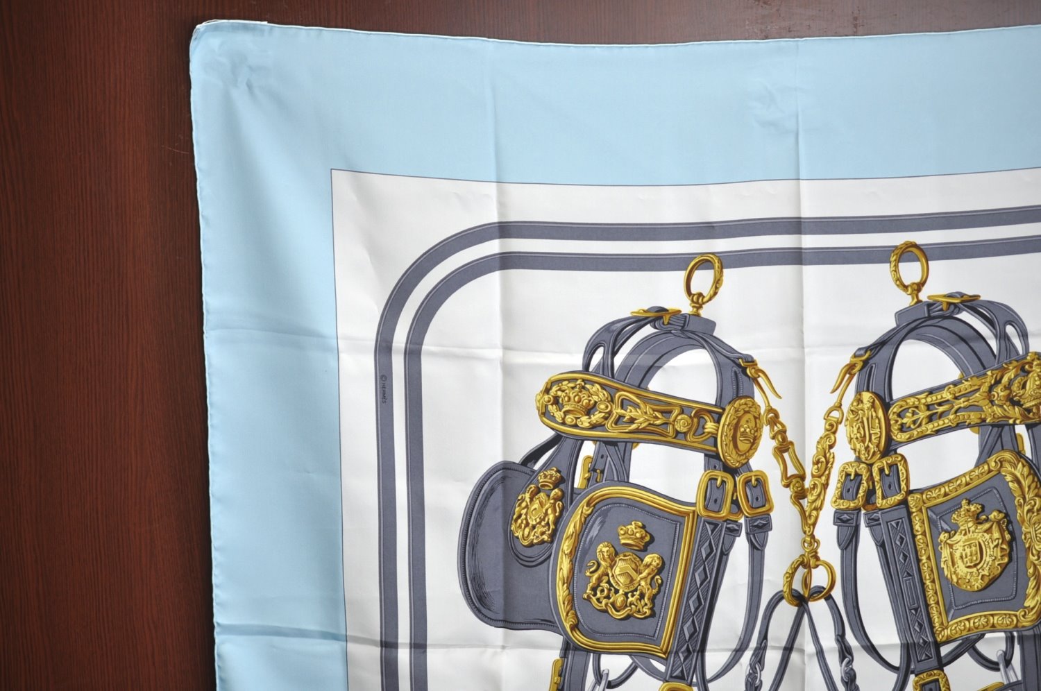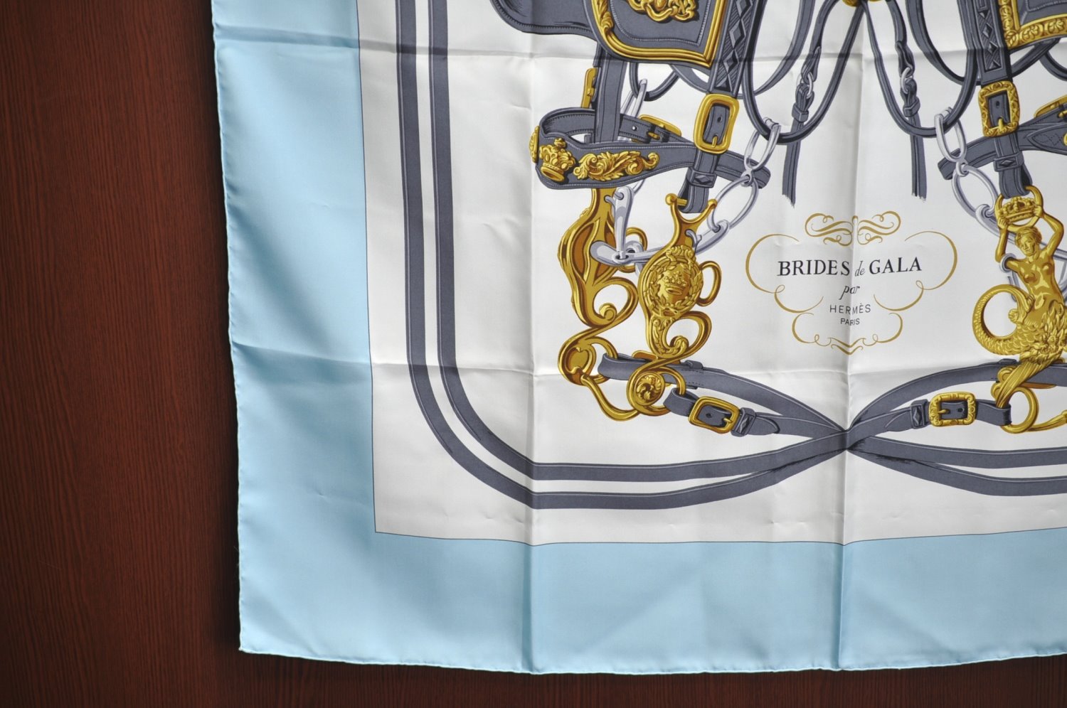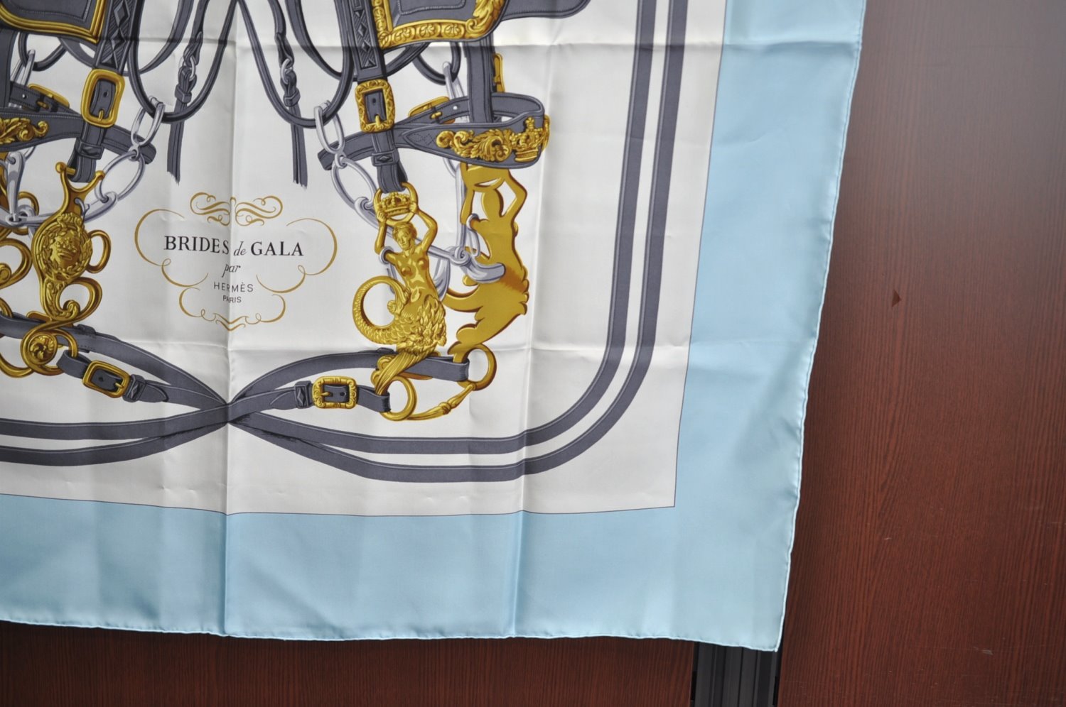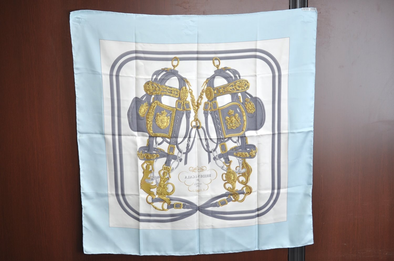 | Authentic HERMES Carre 90 Scarf "BRIDES de GALA par" Silk Light Blue | |