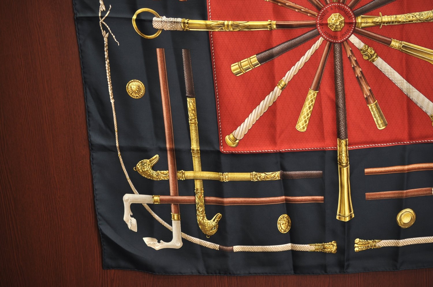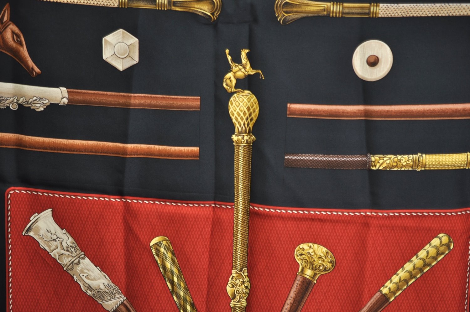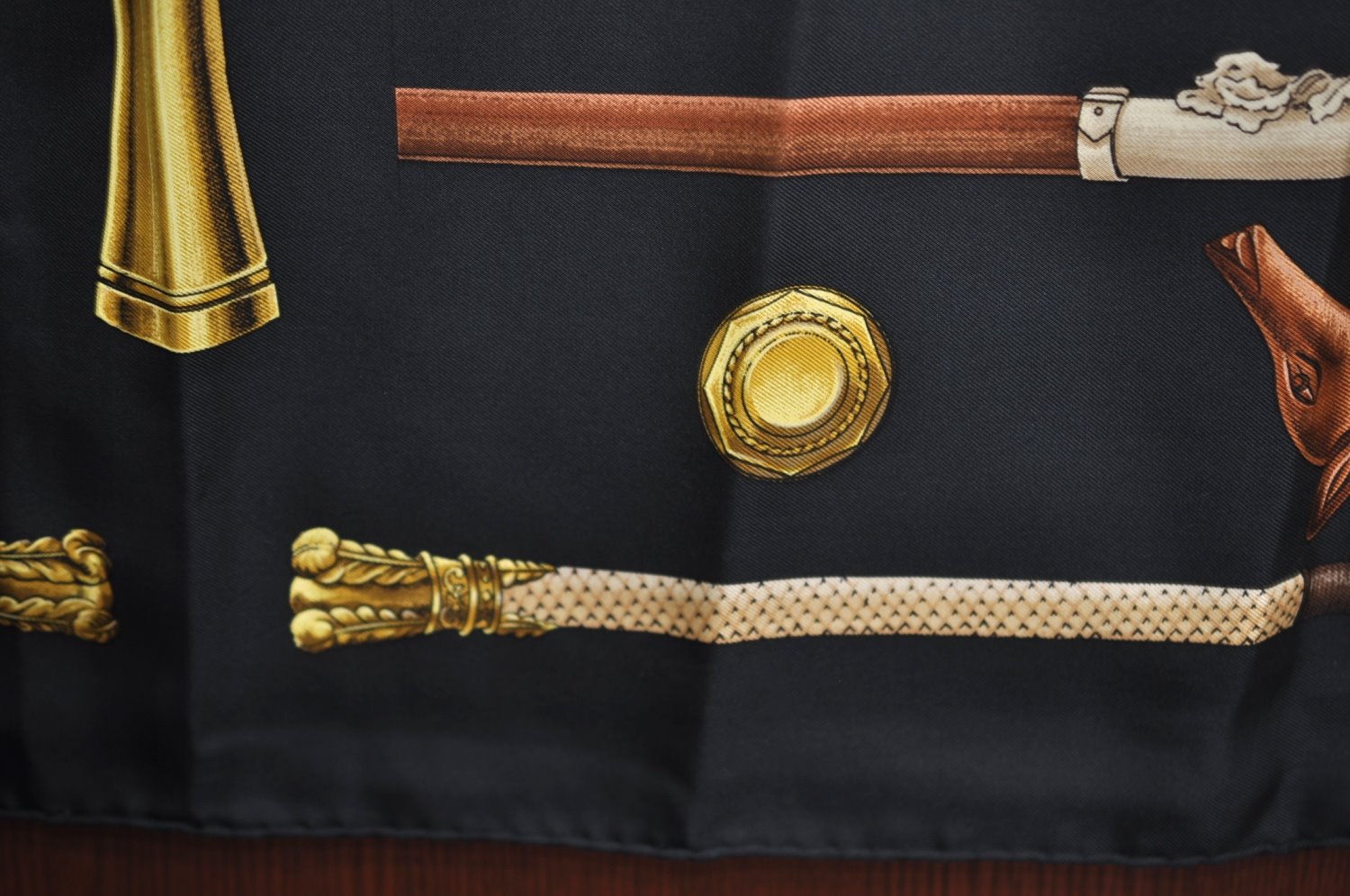 | Authentic HERMES Carre 90 Scarf "CANNES ET POMMEAUX" Silk Black | |