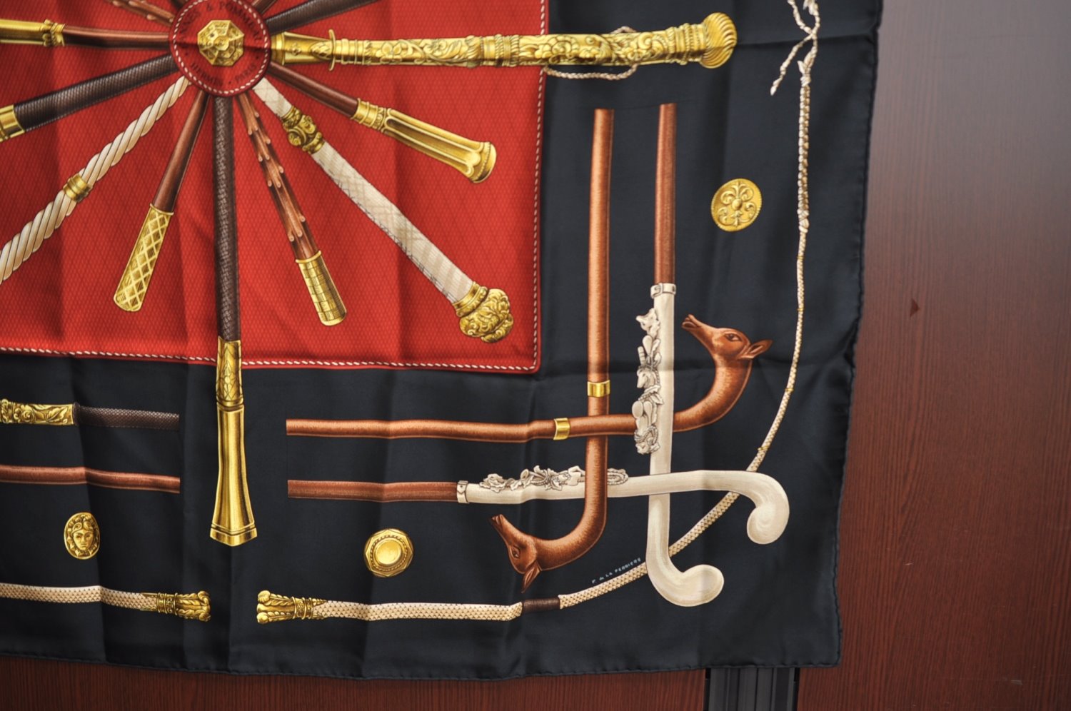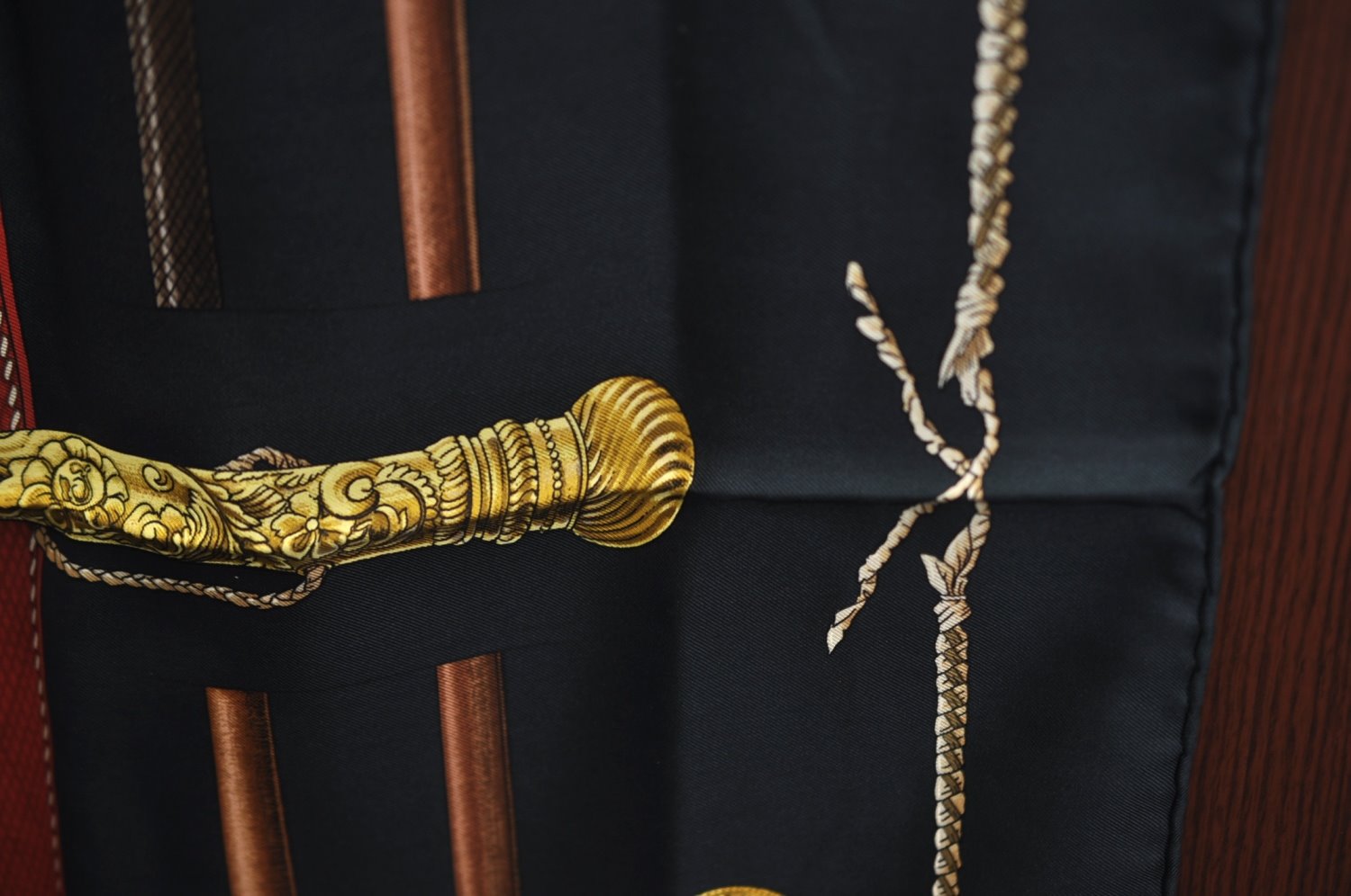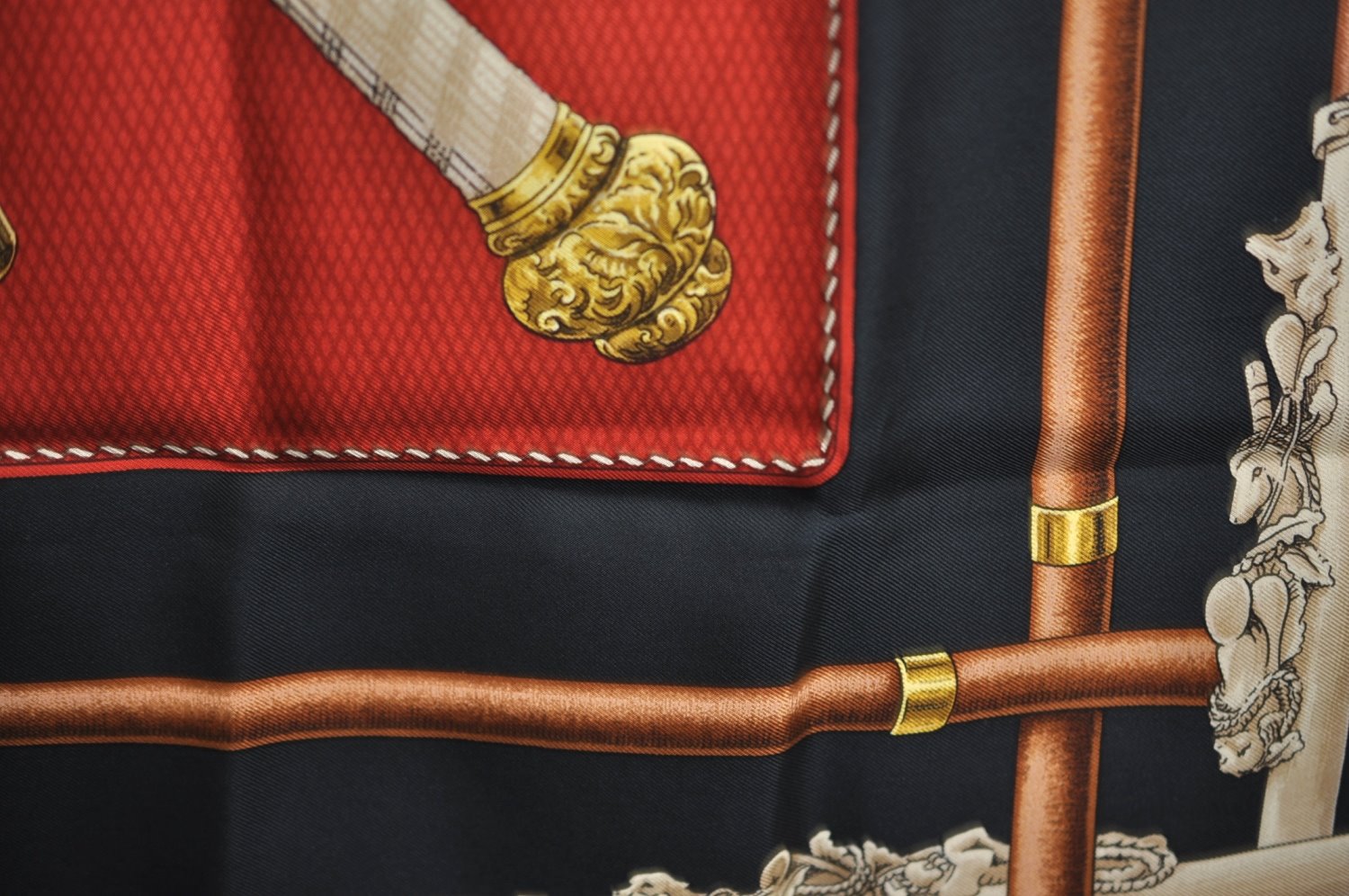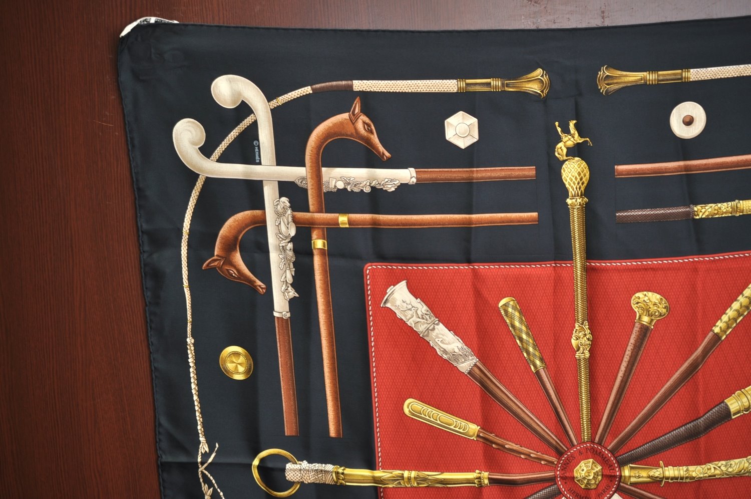 | Authentic HERMES Carre 90 Scarf "CANNES ET POMMEAUX" Silk Black | |