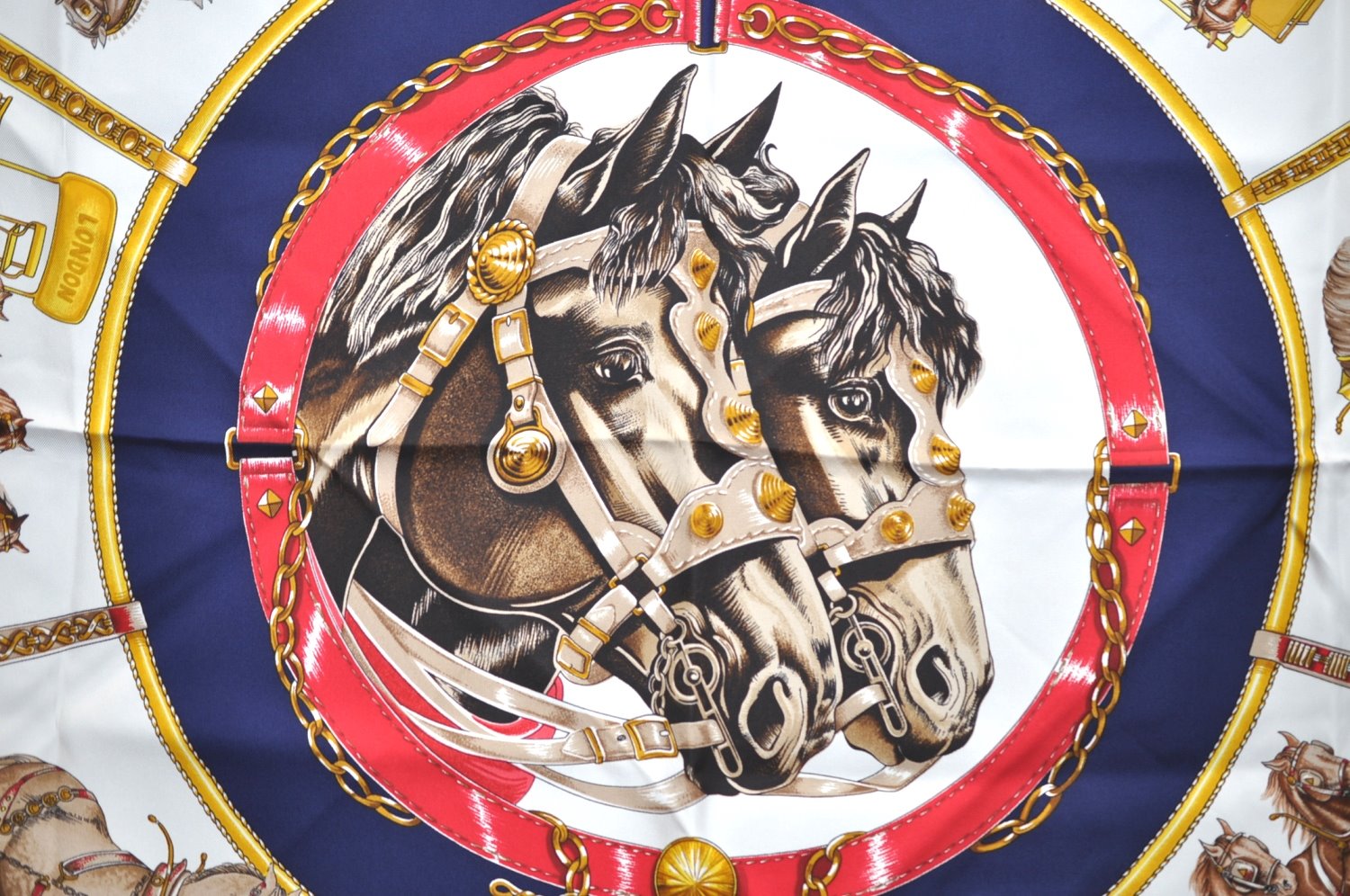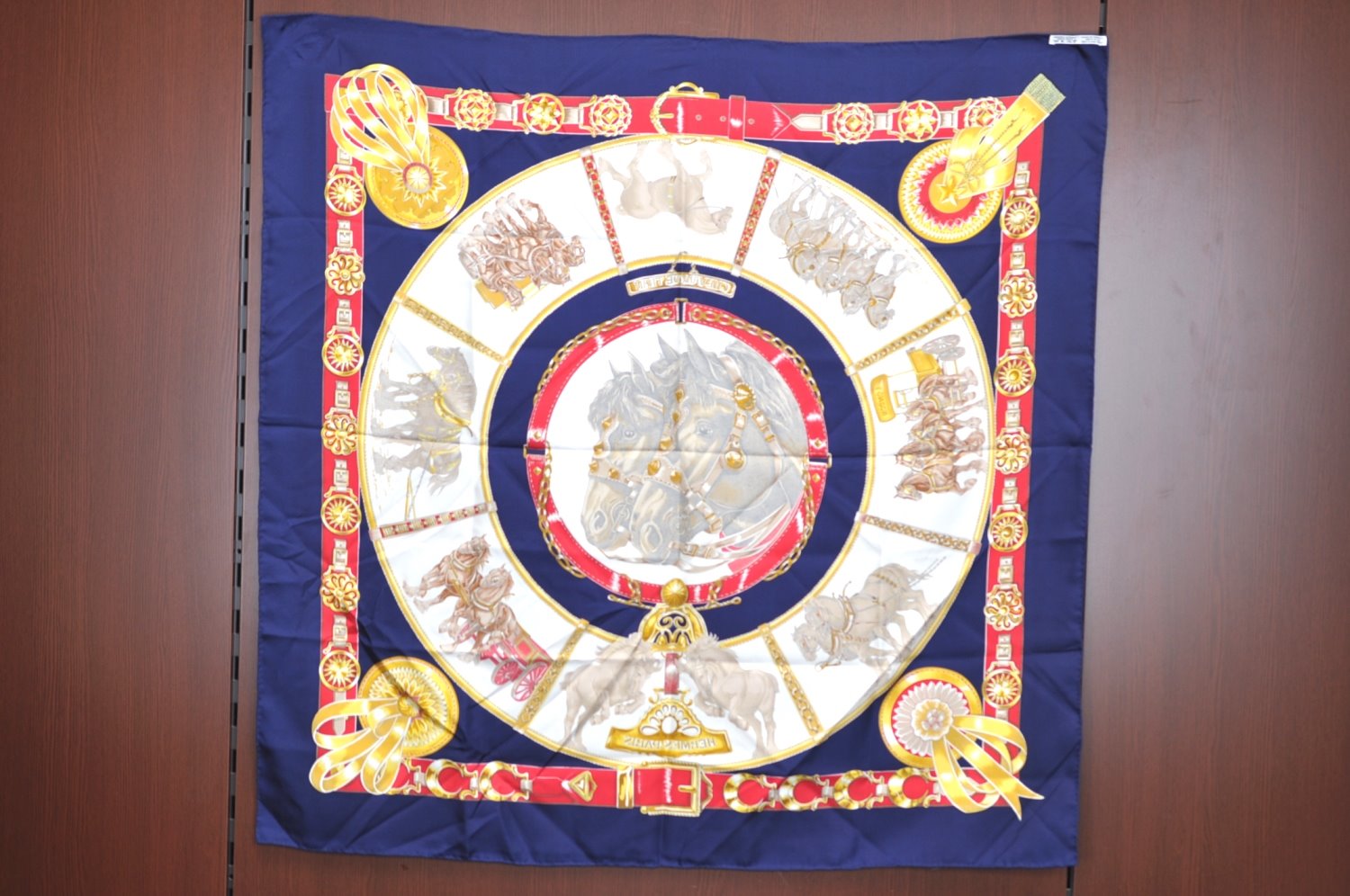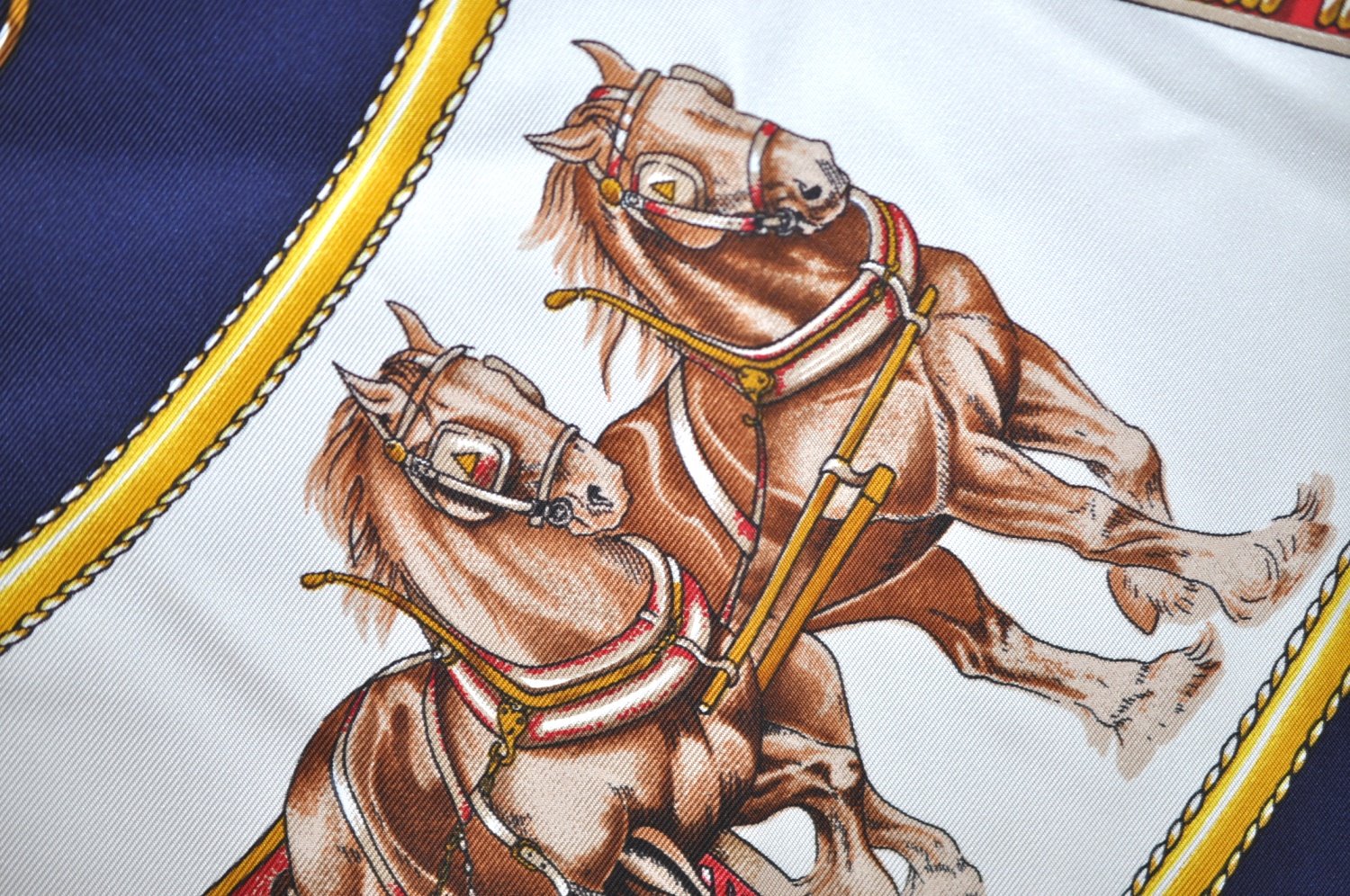 | Authentic HERMES Carre 90 Scarf "CHEVAUX DE TRAIT" Silk Blue | |