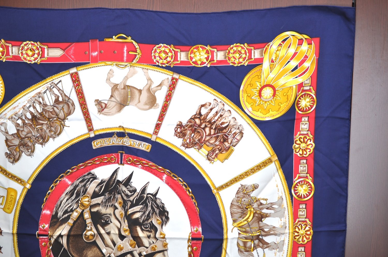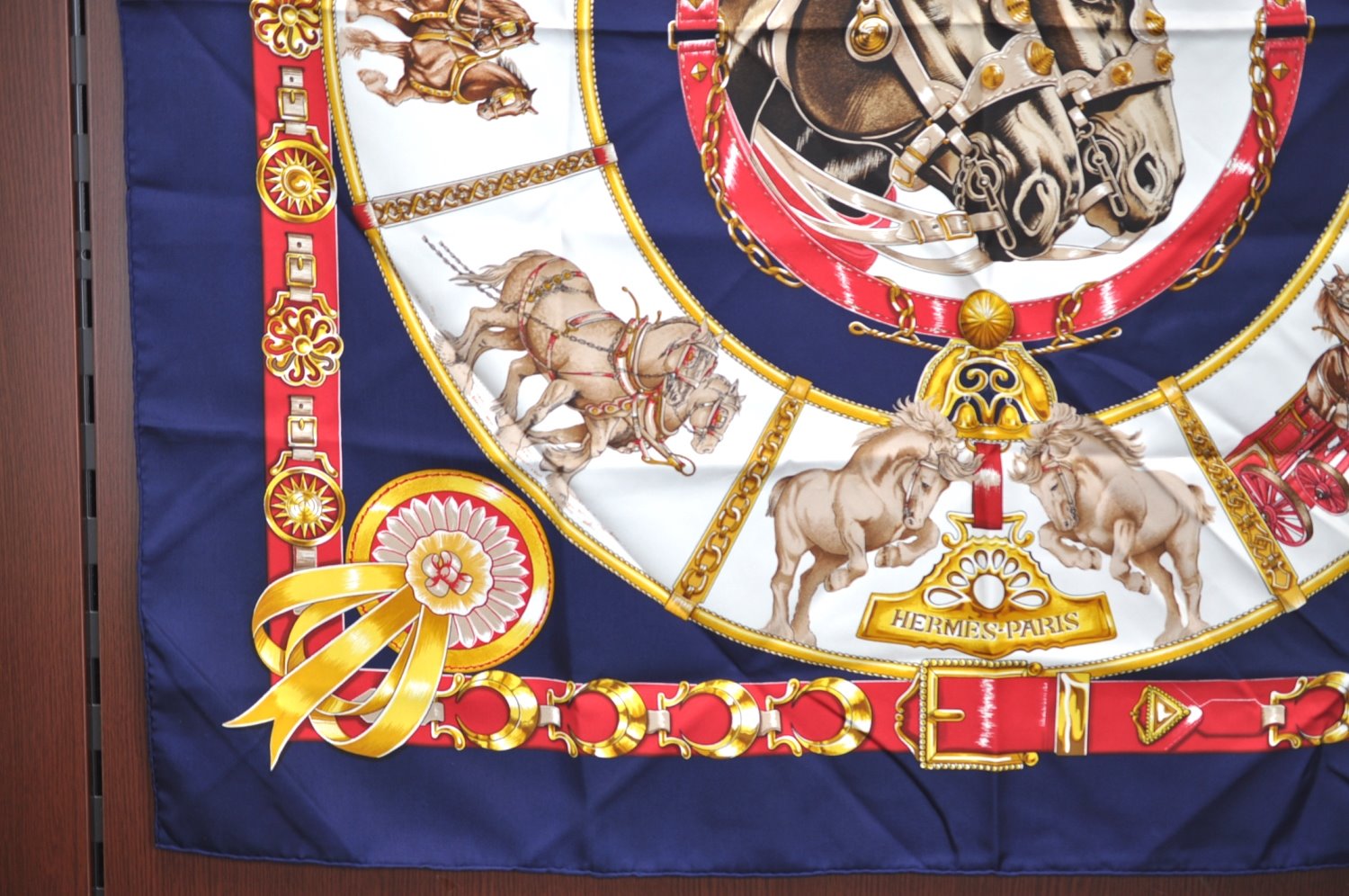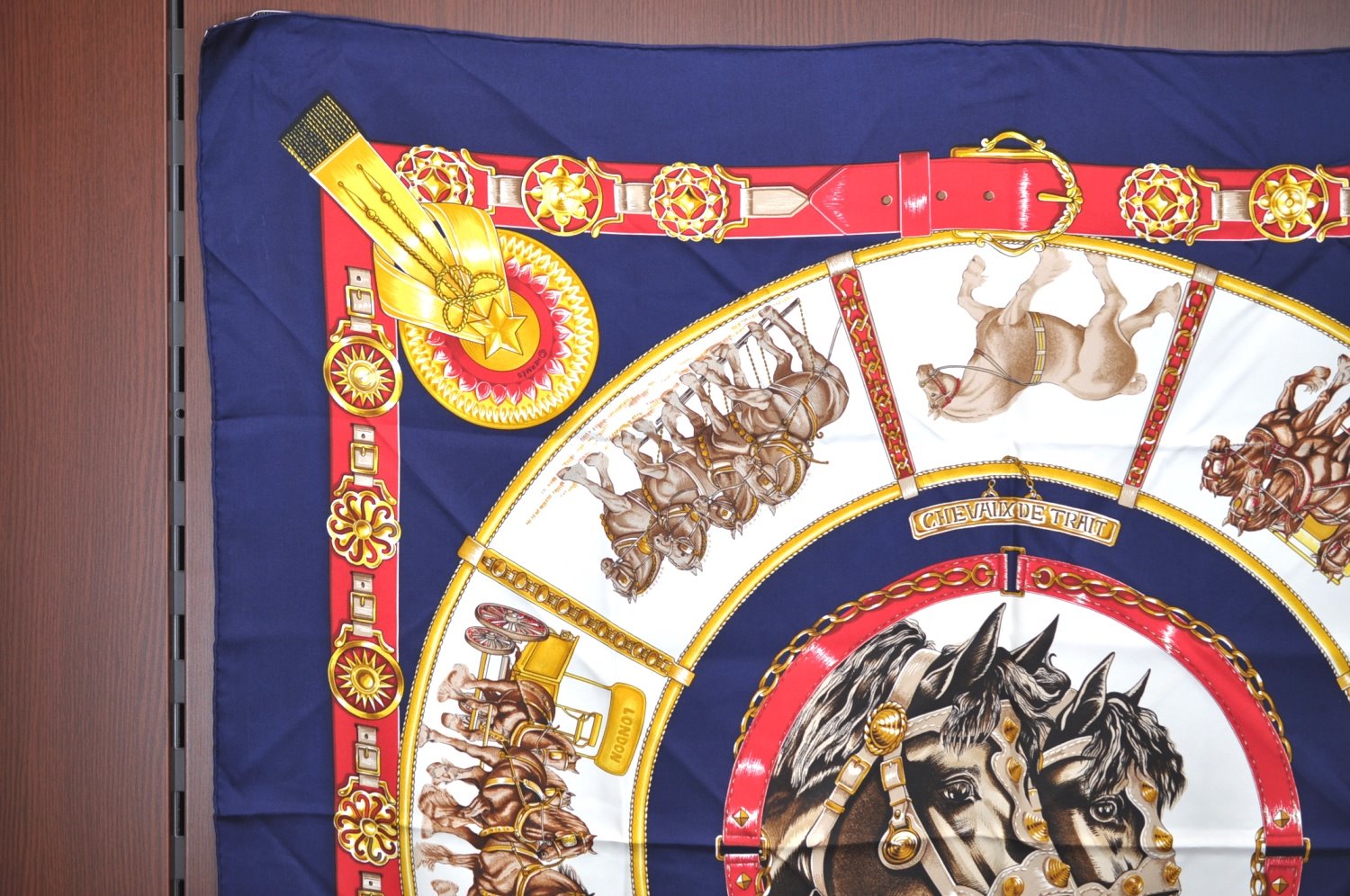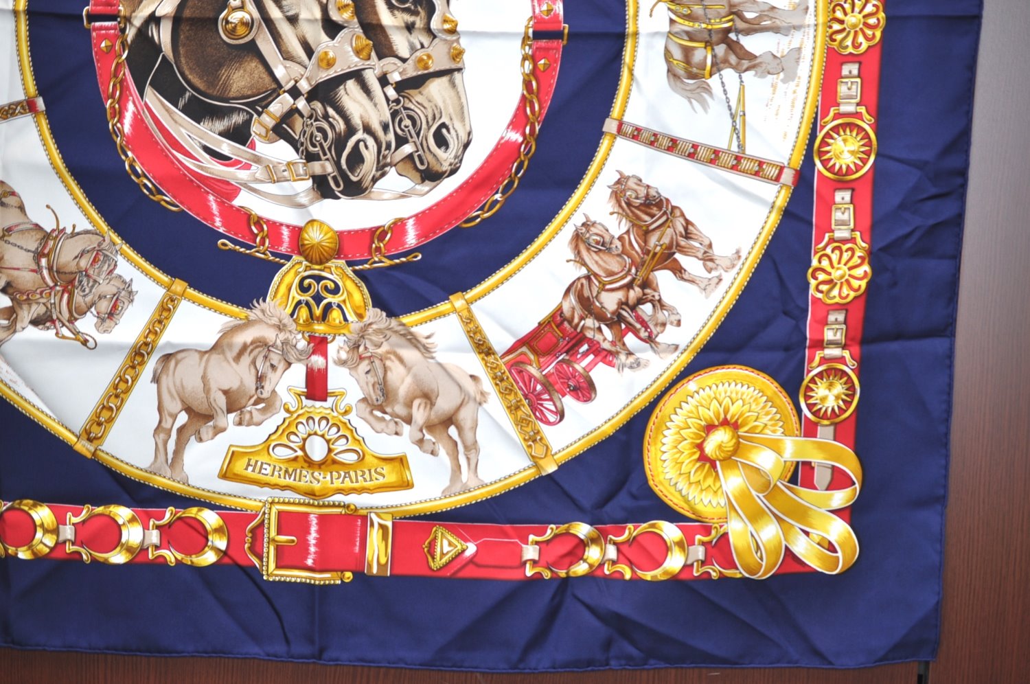 | Authentic HERMES Carre 90 Scarf "CHEVAUX DE TRAIT" Silk Blue | |