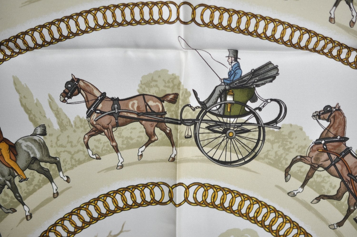 | Authentic HERMES Carre 90 Scarf "LA PROMENADE DE LONGCHAMPS" Silk Red Box | |