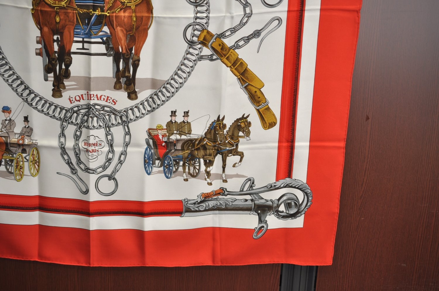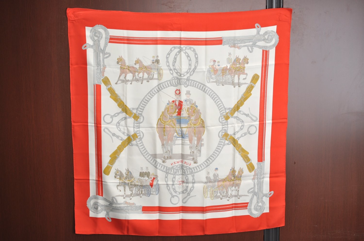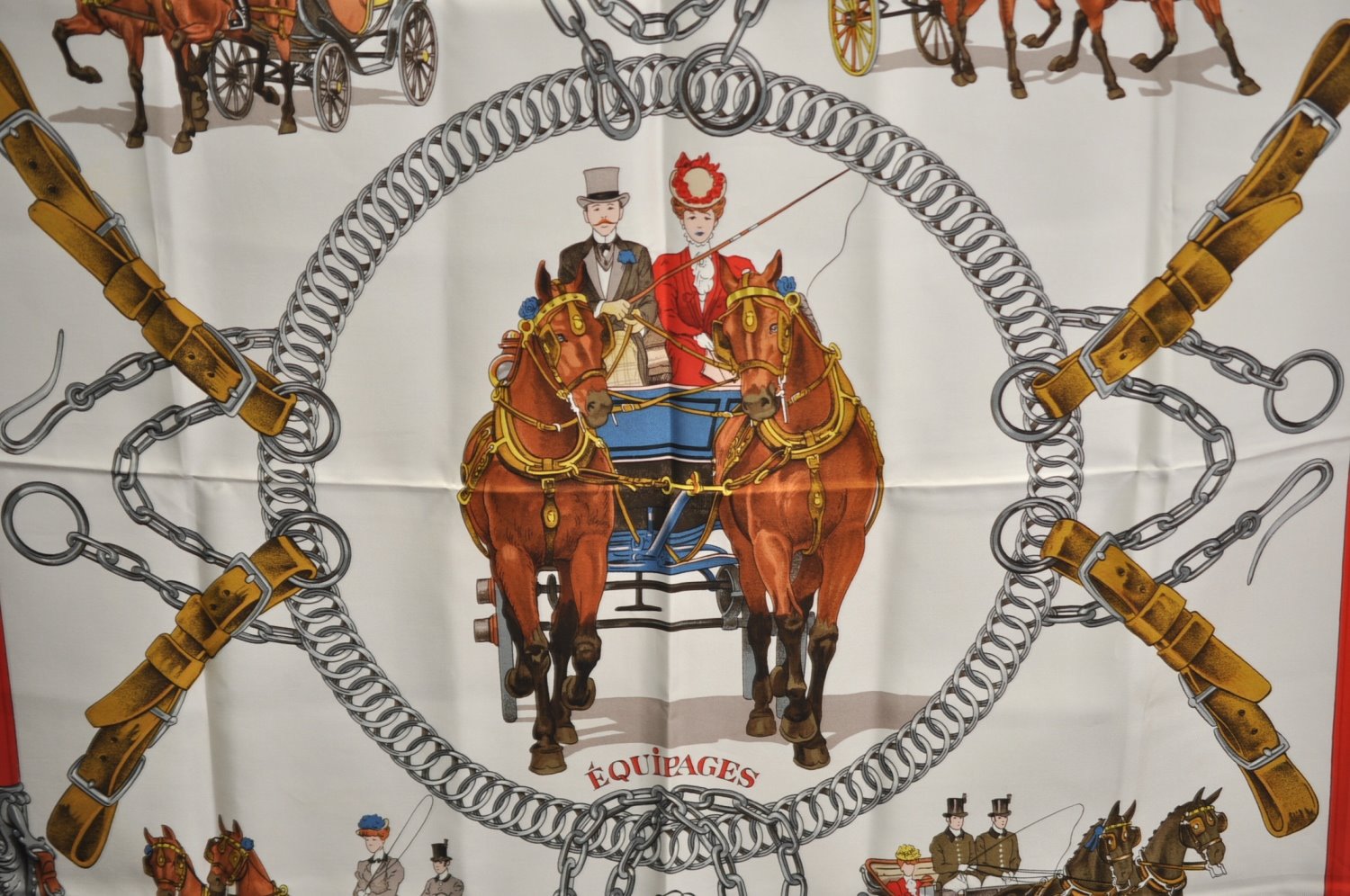 | Authentic HERMES Carre 90 Scarf "EQUIPAGES" Silk Red | |