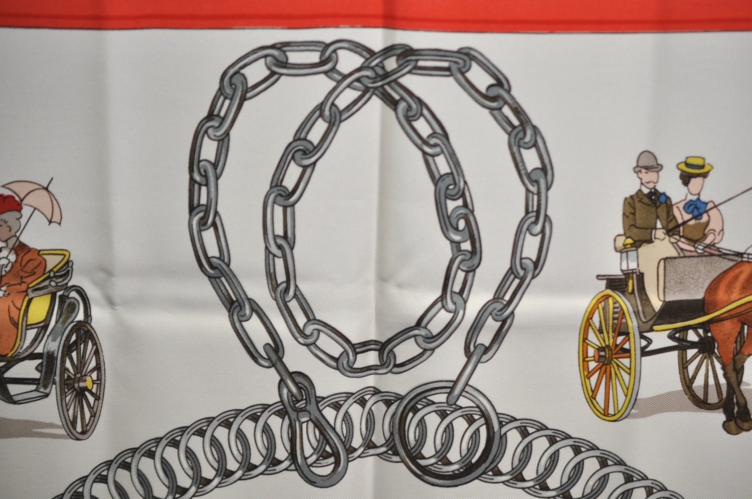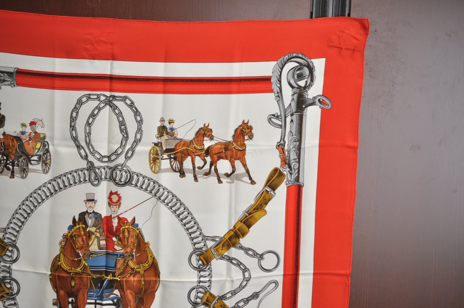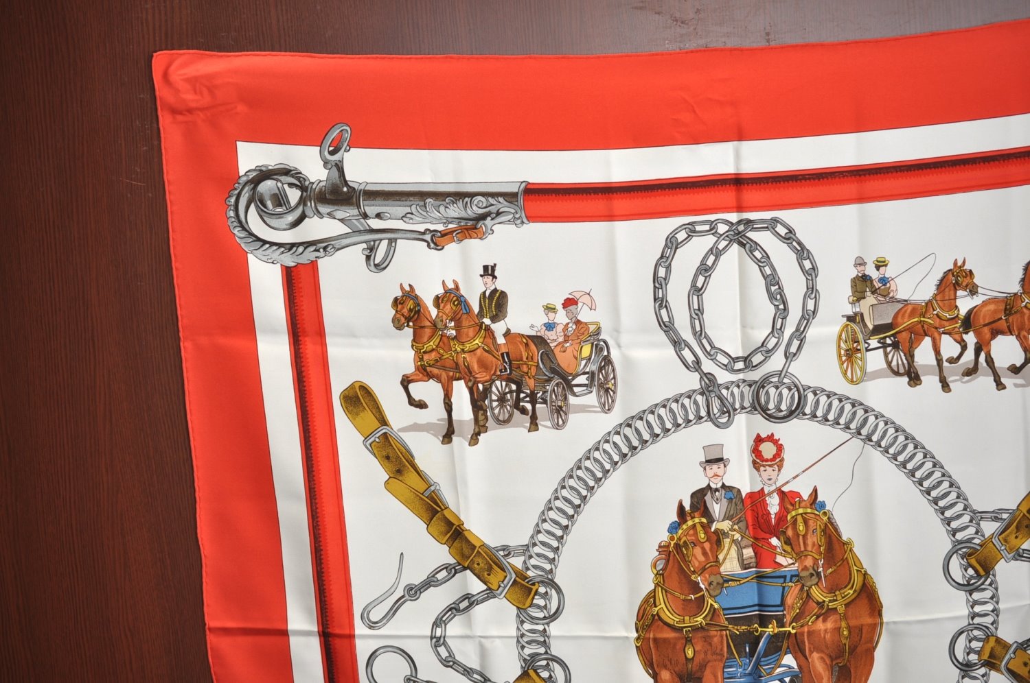 | Authentic HERMES Carre 90 Scarf "EQUIPAGES" Silk Red | |