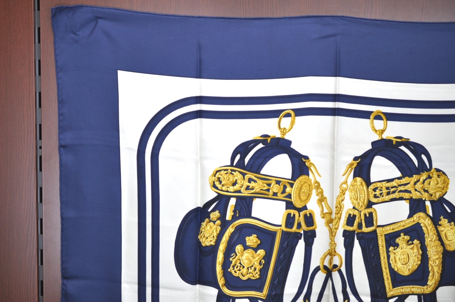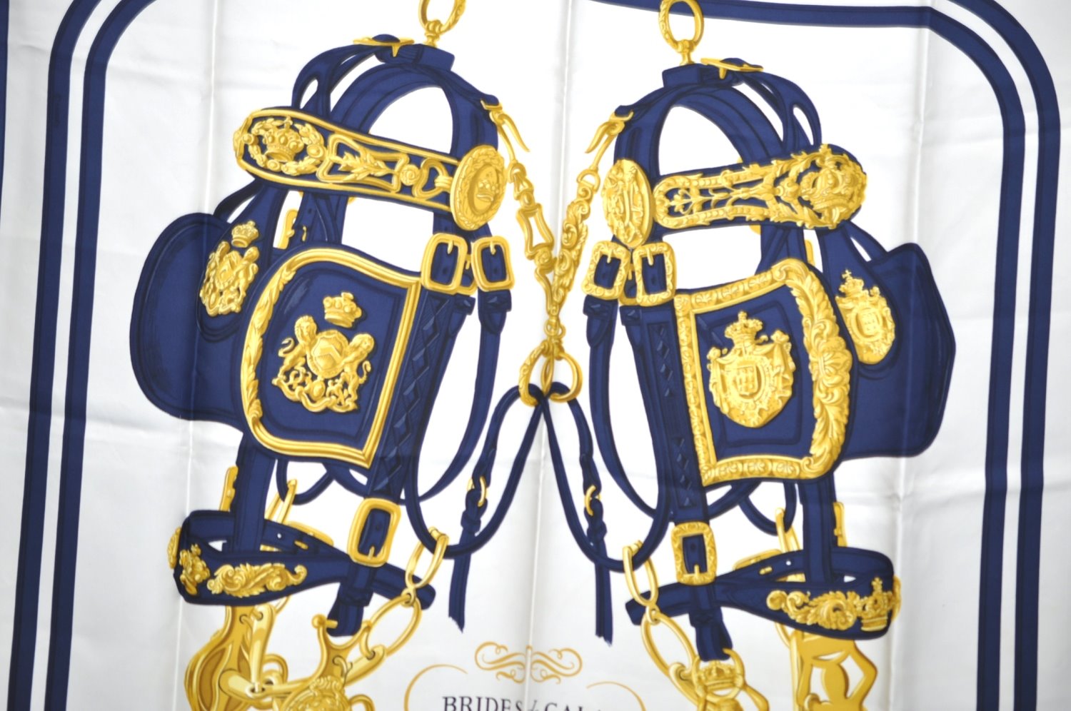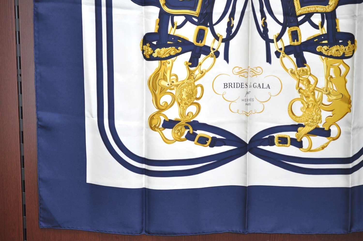 | Authentic HERMES Carre 90 Scarf "BRIDES de GALA par" Silk Navy | |
