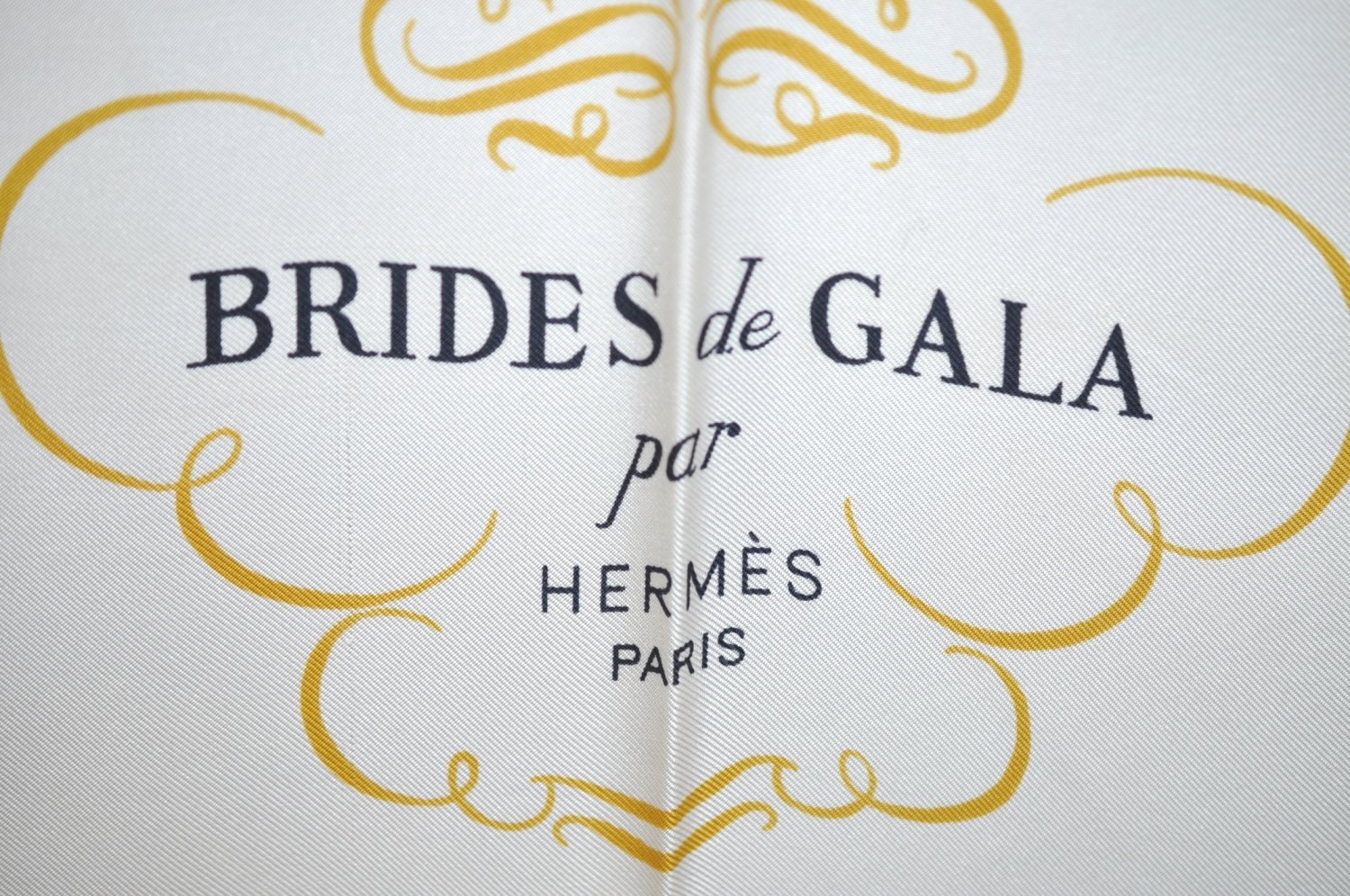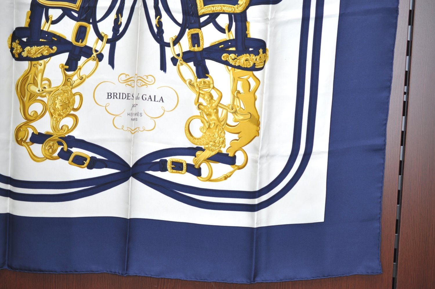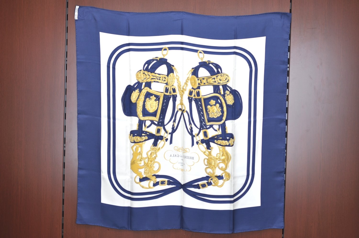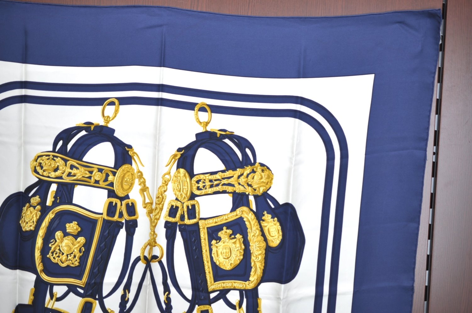 | Authentic HERMES Carre 90 Scarf "BRIDES de GALA par" Silk Navy | |